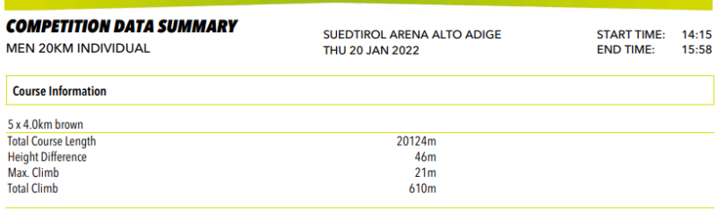 Also important for some calculations described further down in this article is that we have a total course length for the event, and this includes the skiing tracks as well as the range section: