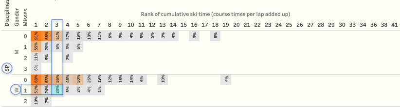 As a quick reminder, this is what the Win Expectancy Index looks like for all third laps of women’s sprint races (see the interactive version of the full WEI on Tableau Public):