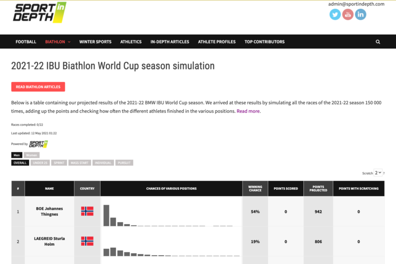 But models remain exactly that, models. And I am sure if the IBU held 150,000 races the reality would be closer to the models. But that’s the beauty of sport and biathlon: we don’t run the races that many time, so we have to consider the form of the day, athletes feeling sick but still participating, harder and softer snow conditions during the race, a loud crowd at the shooting range (remember those days?!?), etc. we can go and on about external qualitative factors that can, and will, impact race results. If a model predicts Laegreid to challenge for the yellow bib, and Hauser to win a specific race, I think they are on to something worth checking out.