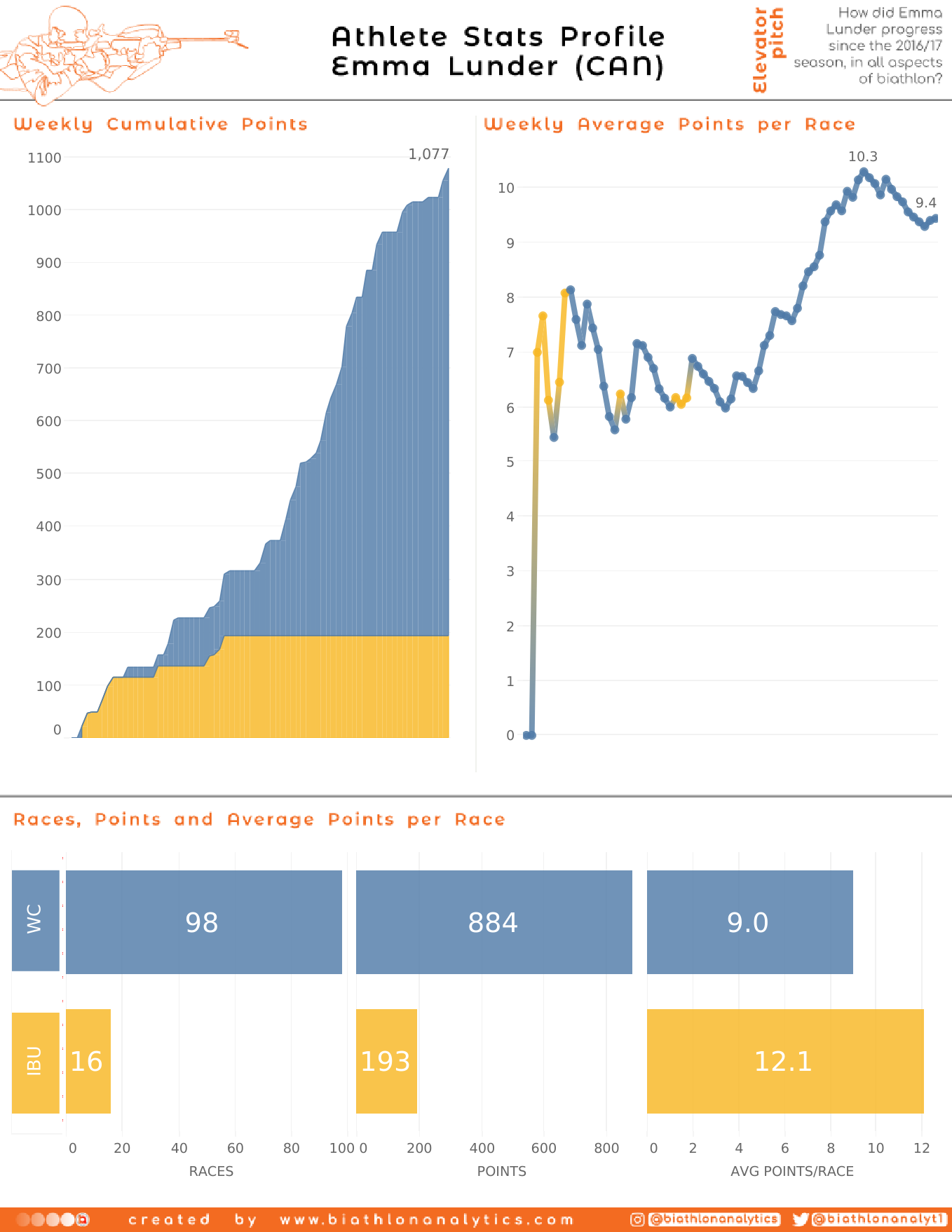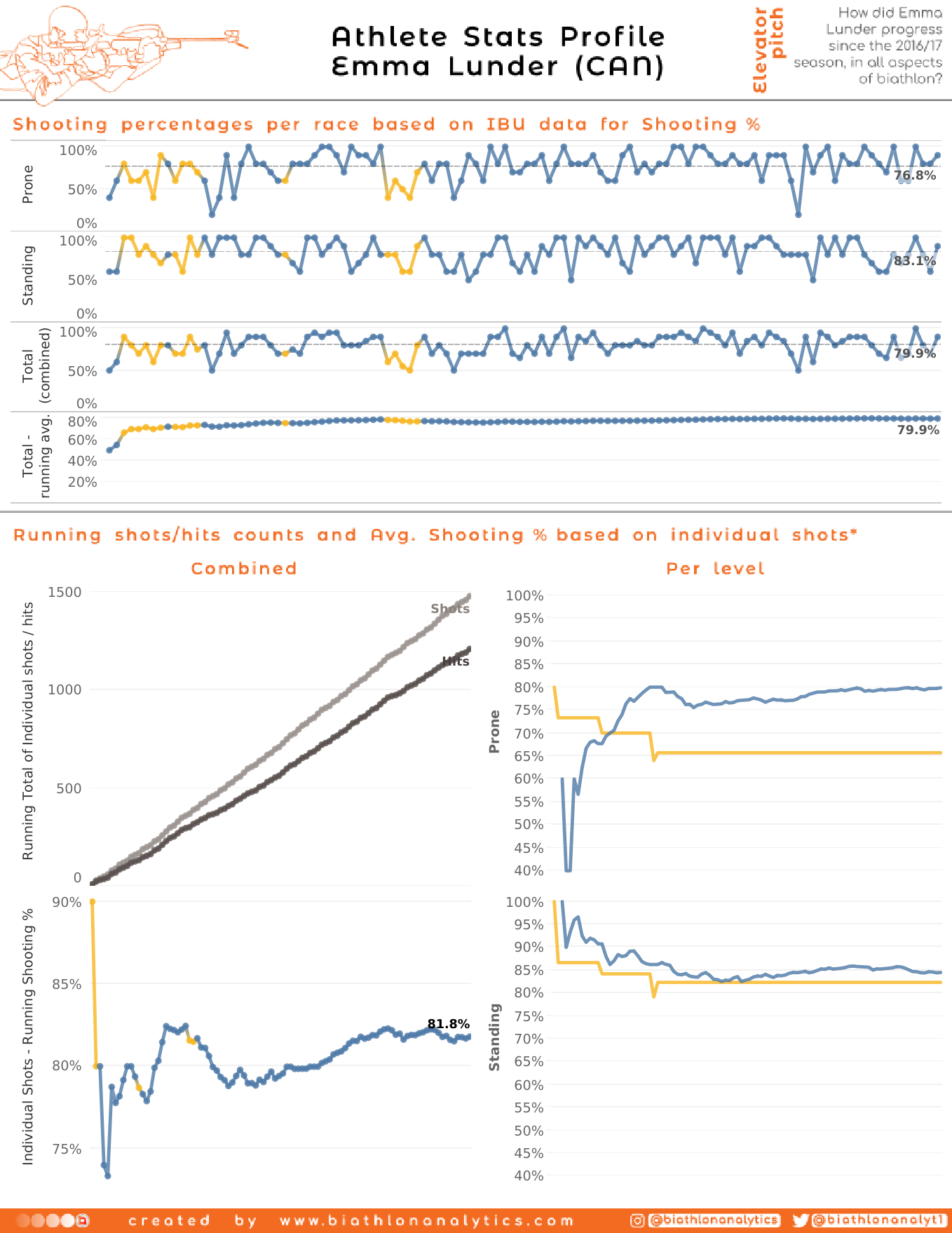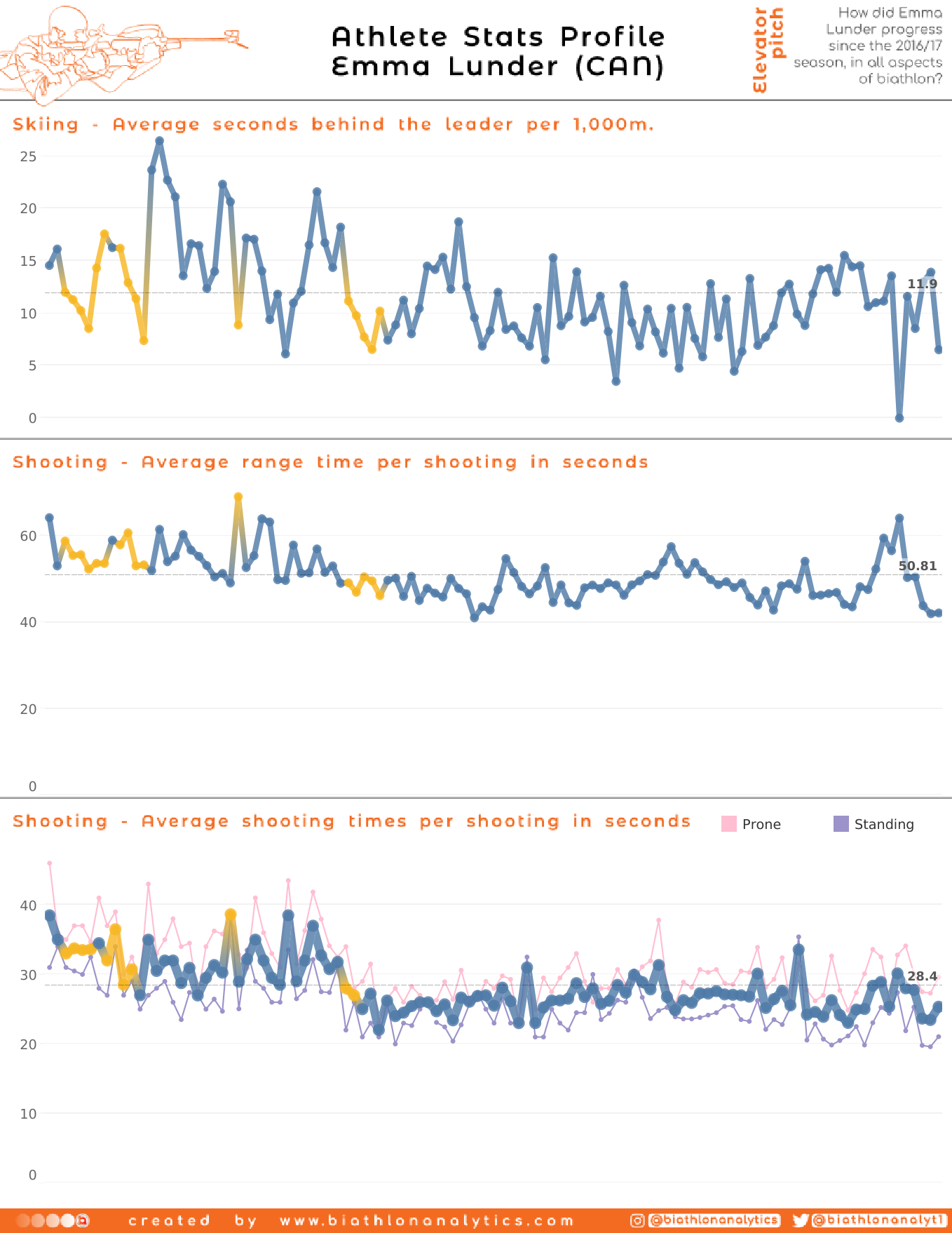 Elevator pitch How did Emma Lunder progress since the 2016/17 season, in all aspects of biathlon?