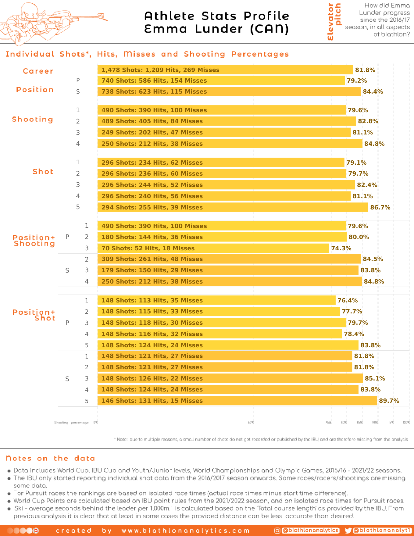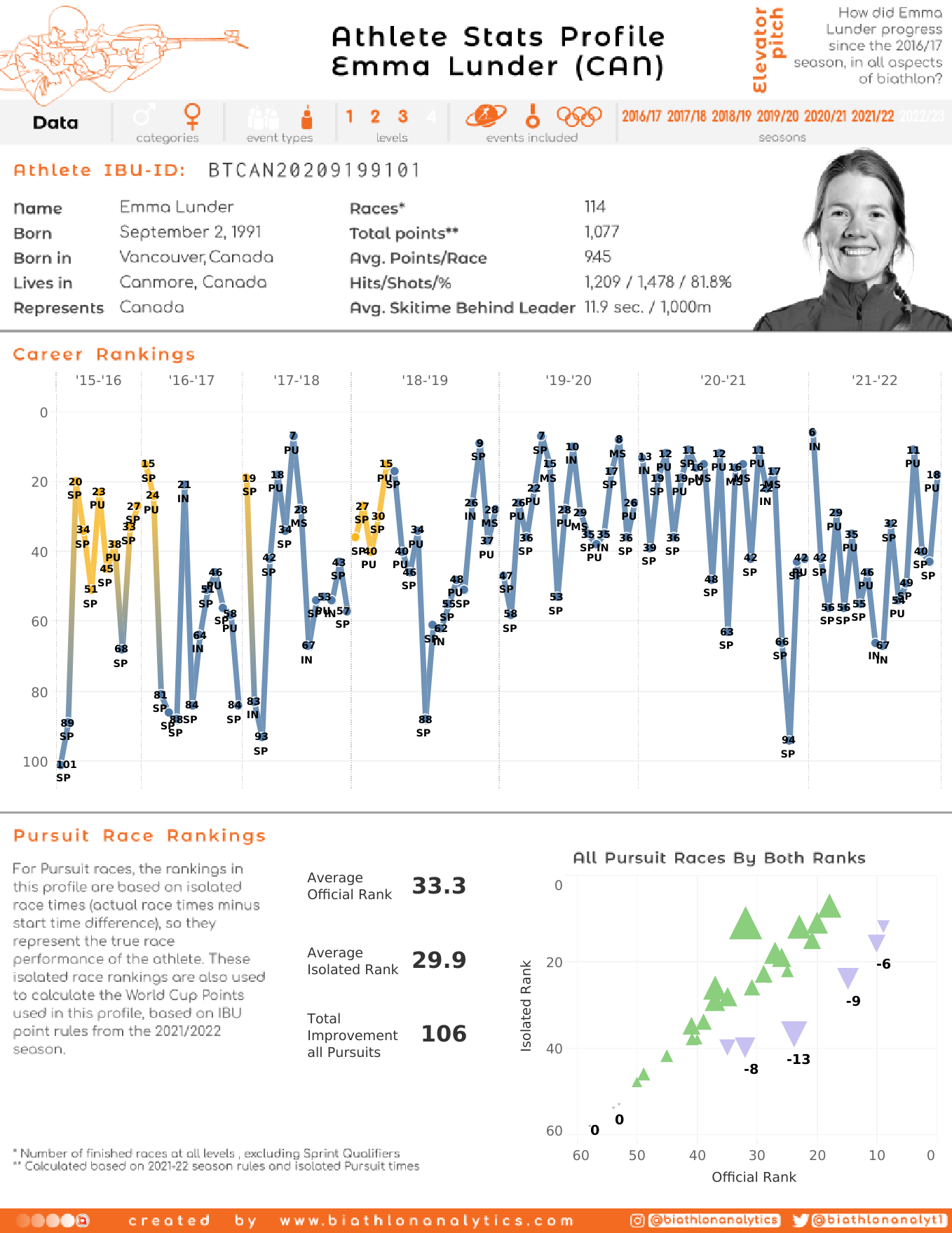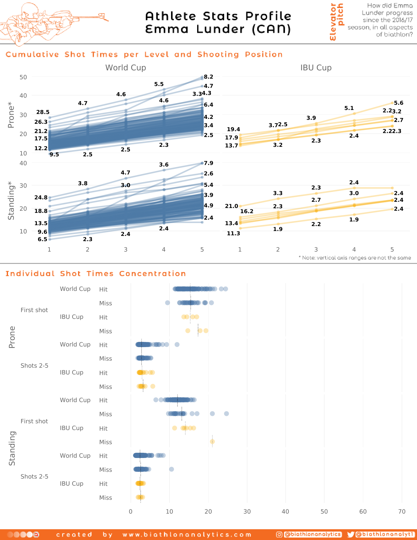 Elevator pitch How did Emma Lunder progress since the 2016/17 season, in all aspects of biathlon?